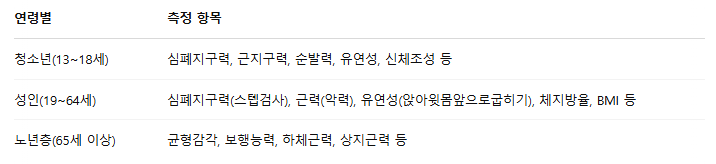 📌 체력측정 항목 예시