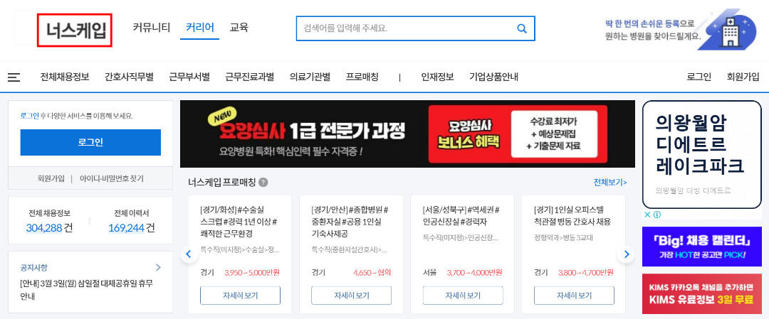 너스케입 커리어는 대한민국 No.1 간호사 전문 취업포털로서 40만 회원을 기반으로 Only간호사에 특화된 전문 구인구직 사이트입니다. 종합병원, 대학병원, 의료기관별, 간호사 직무별, 지역별 간