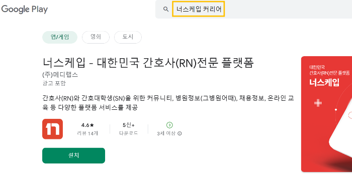 구글 플레이 스토어 또는 애플 앱스토어에서 '너스케입 커리어' 앱을 다운로드하여 설치합니다.
