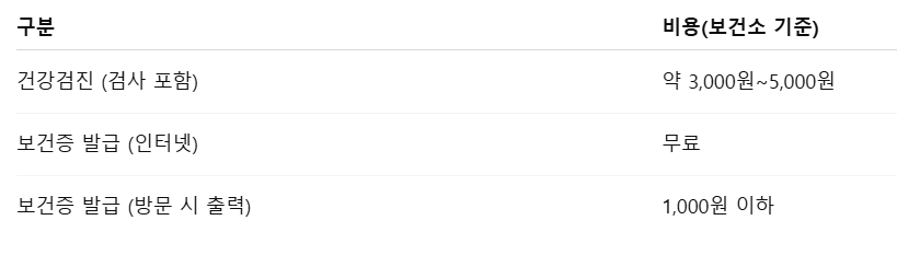 보건증 발급은 비용이 저렴하고 소요 기간도 짧아 많은 분들이 선호합니다.