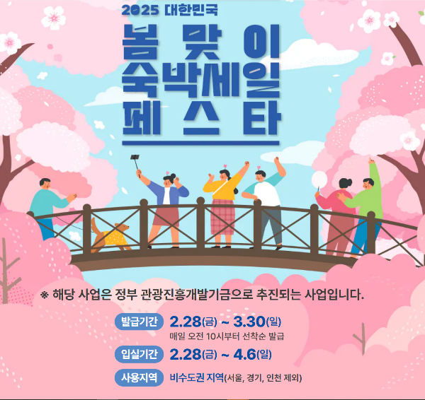 2025 대한민국 봄맞이 숙박세일 페스타는 봄철 국내 여행을 더욱 알뜰하게 즐길 수 있는 좋은 기회입니다.