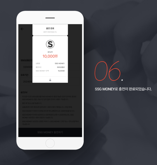 모바일 앱에서 신세계상품권을 SSG머니로 전환할 수 있습니다.