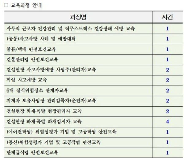 안전한 작업 환경을 위해 꼭 필요한 교육이니 계획적으로 이수하시기 바랍니다.