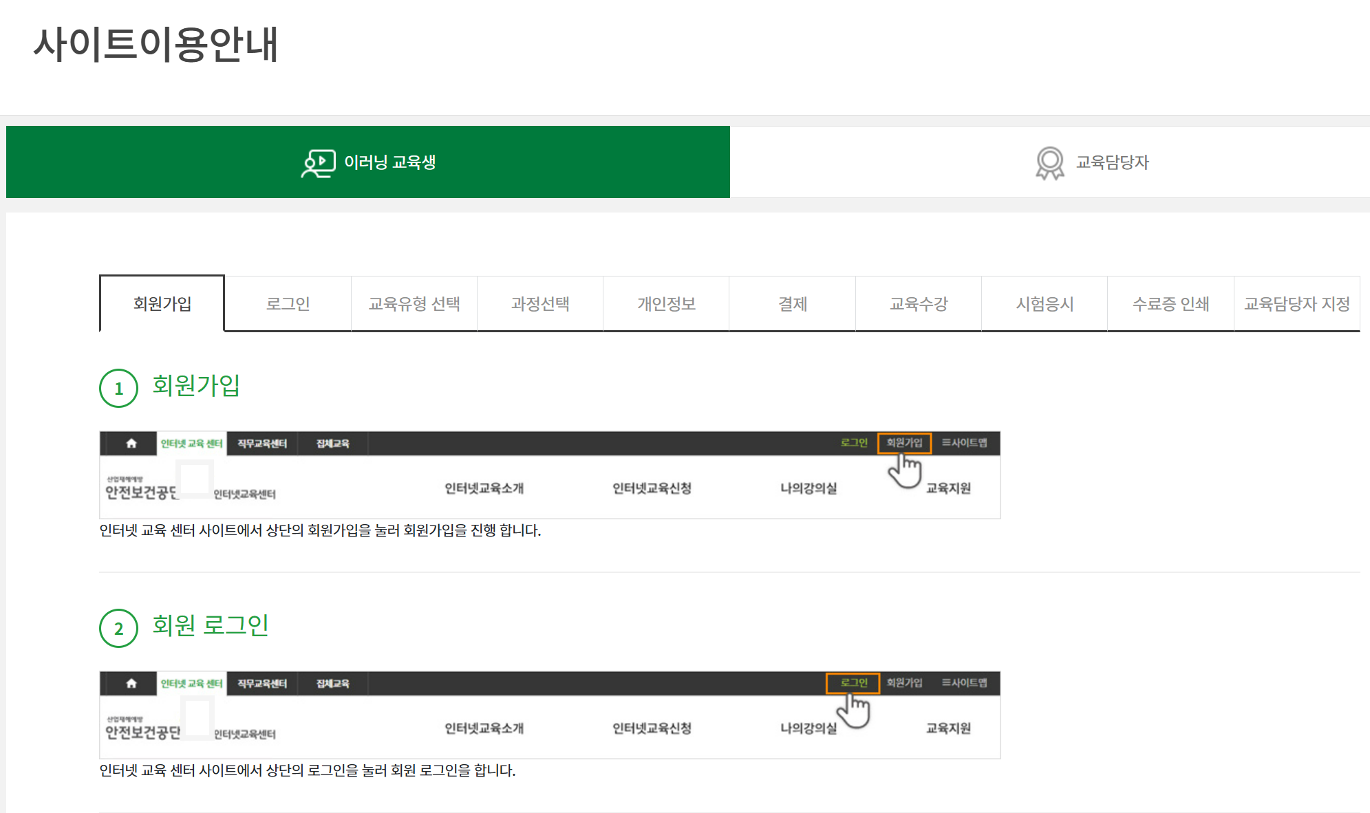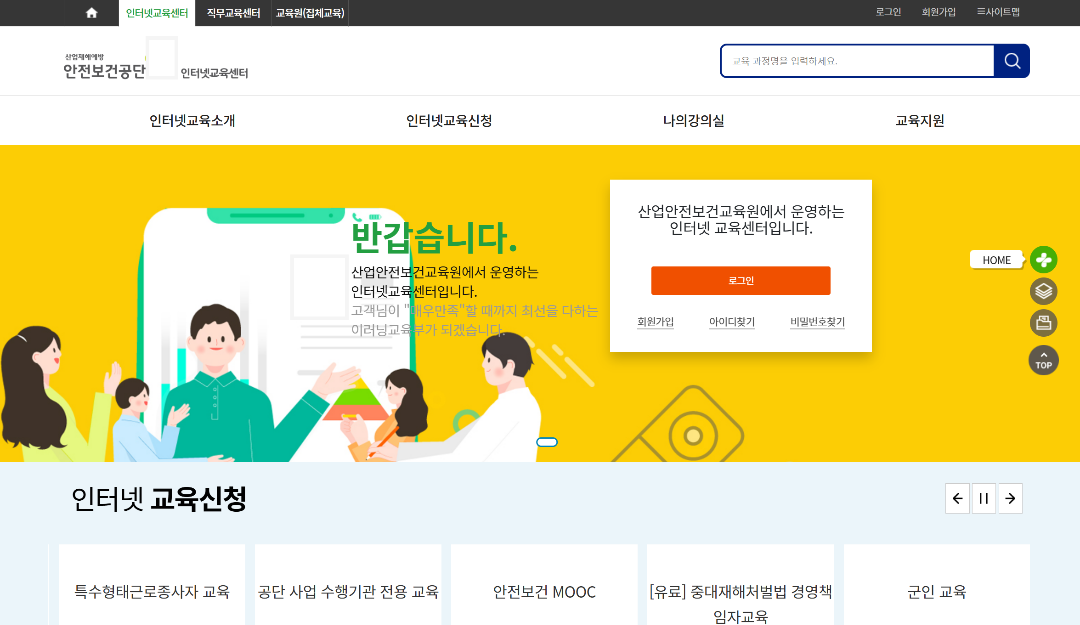 안전보건공단의 인터넷 교육은 아래 절차를 통해 신청하고 수강할 수 있습니다.