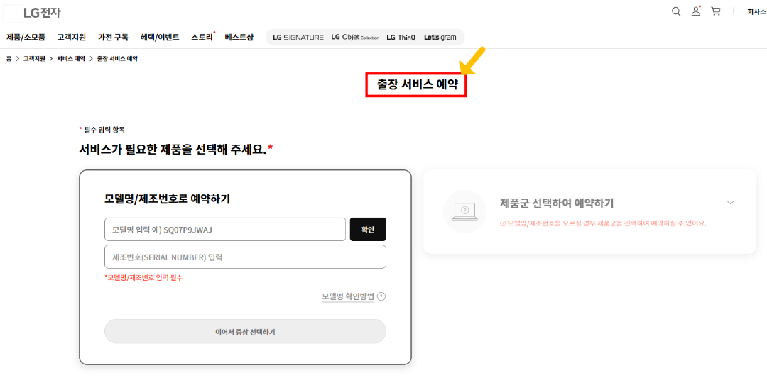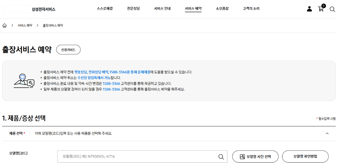 삼성 계정으로 로그인한 후, ‘방문 서비스 신청’ 메뉴를 선택합니다.