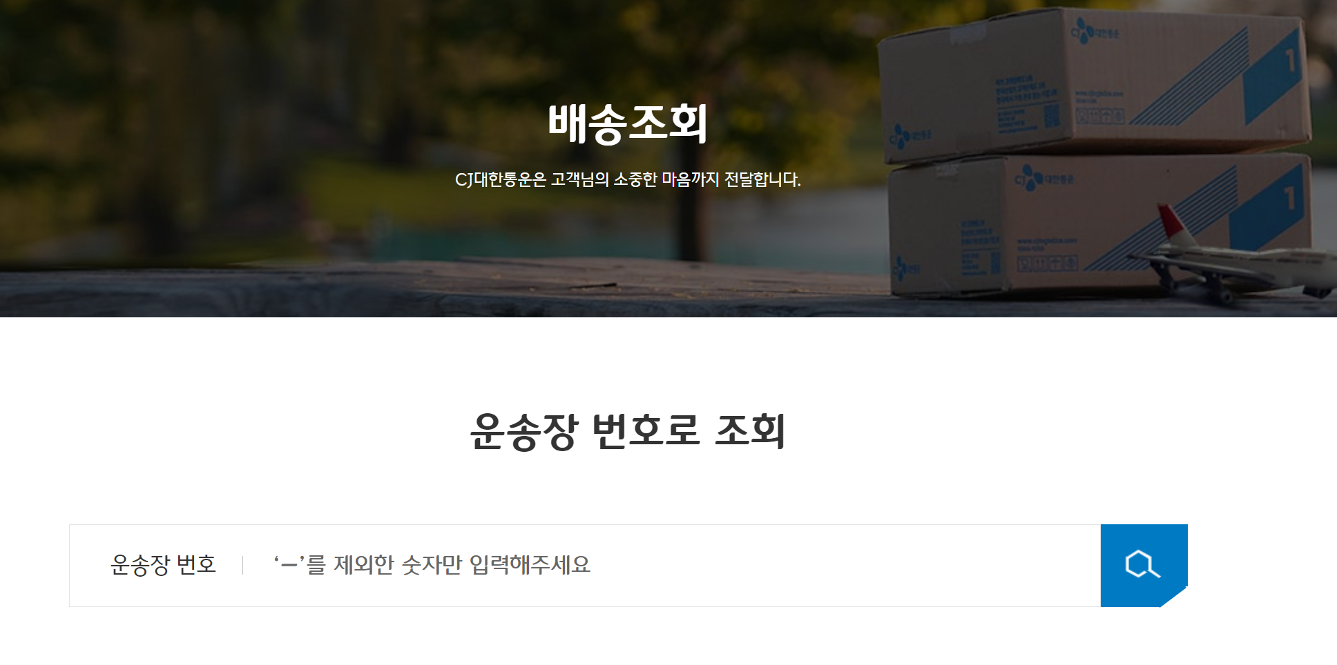 - 운송장 번호 입력: 메인 화면의 "배송조회" 입력란에 운송장 번호를 입력합니다.