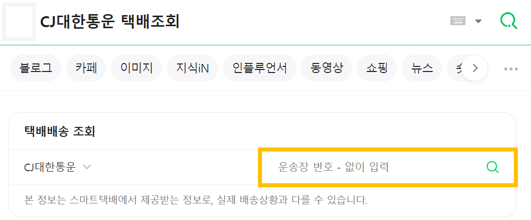 - 네이버 검색: 네이버 검색창에 운송장 번호를 입력하면 바로 배송 상태를 확인할 수 있습니다.